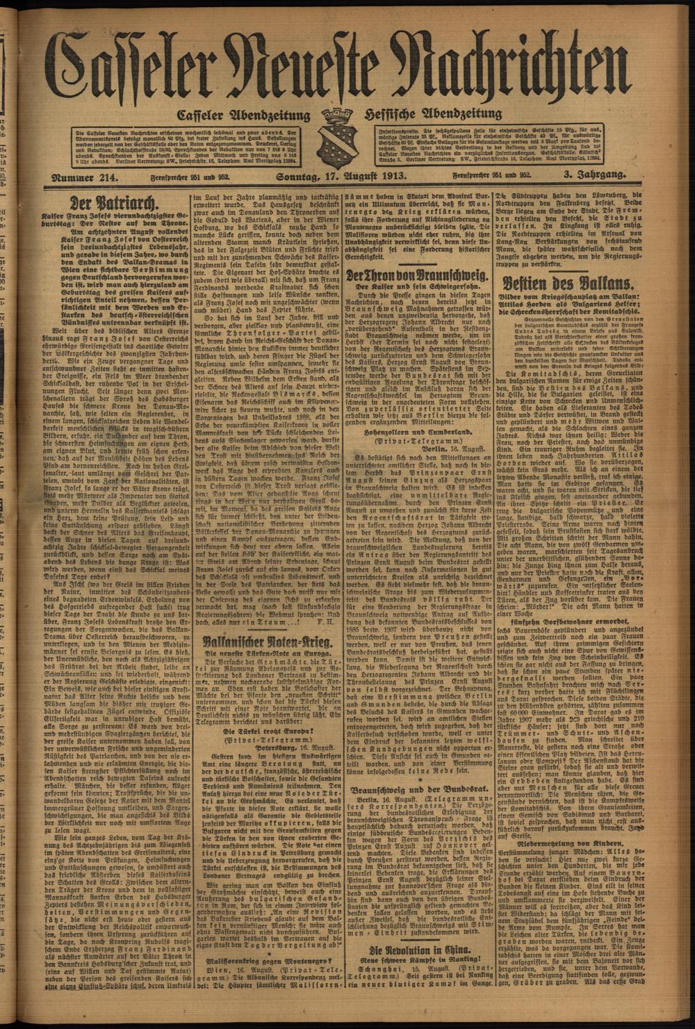Casseler neueste Nachrichten. 1914-1918