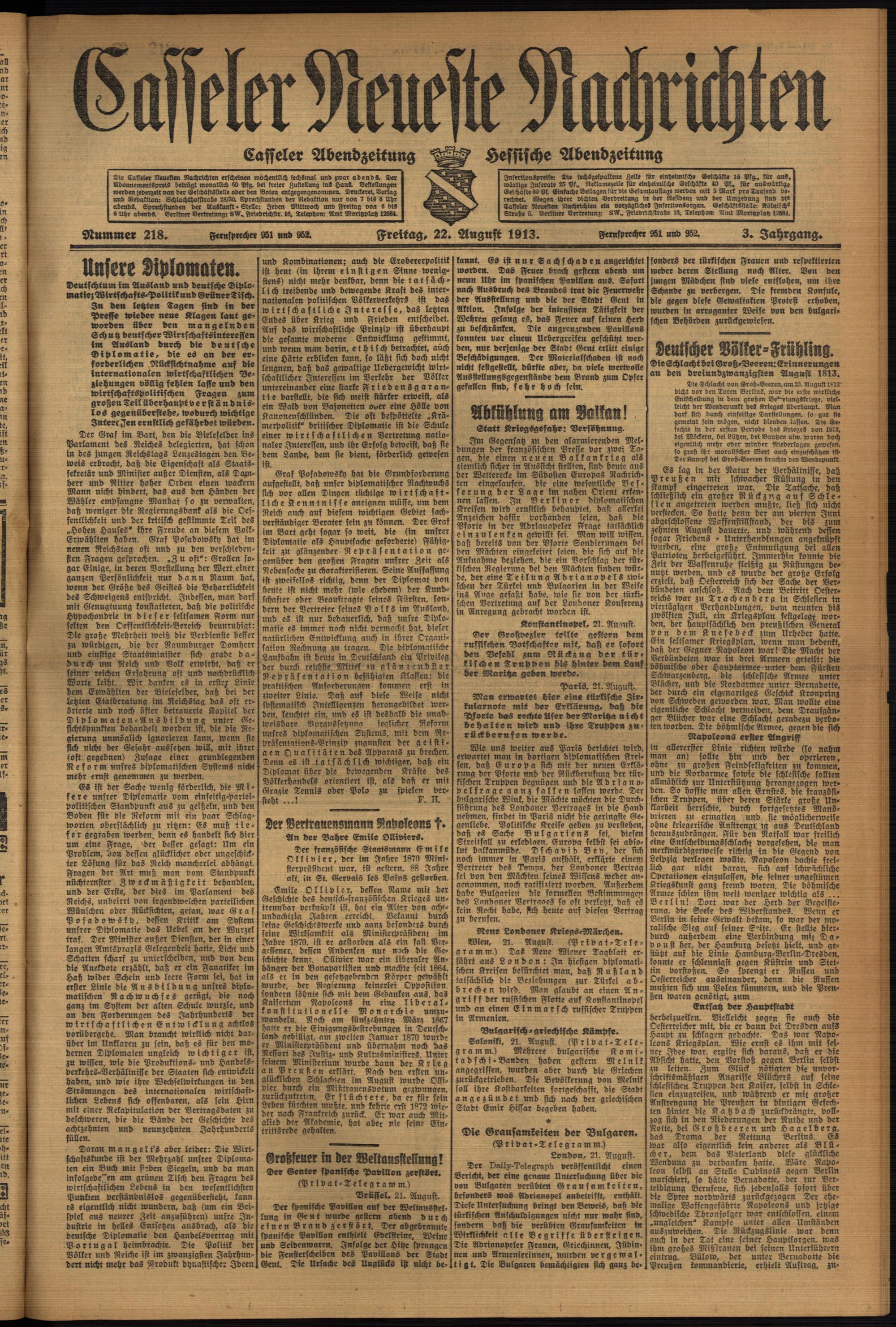 Casseler neueste Nachrichten. 1914-1918
