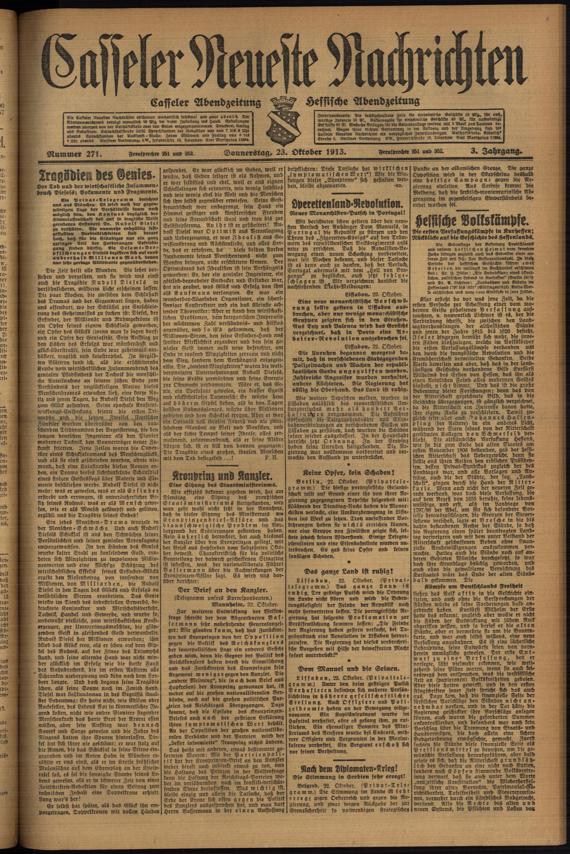 Casseler neueste Nachrichten. 1914-1918