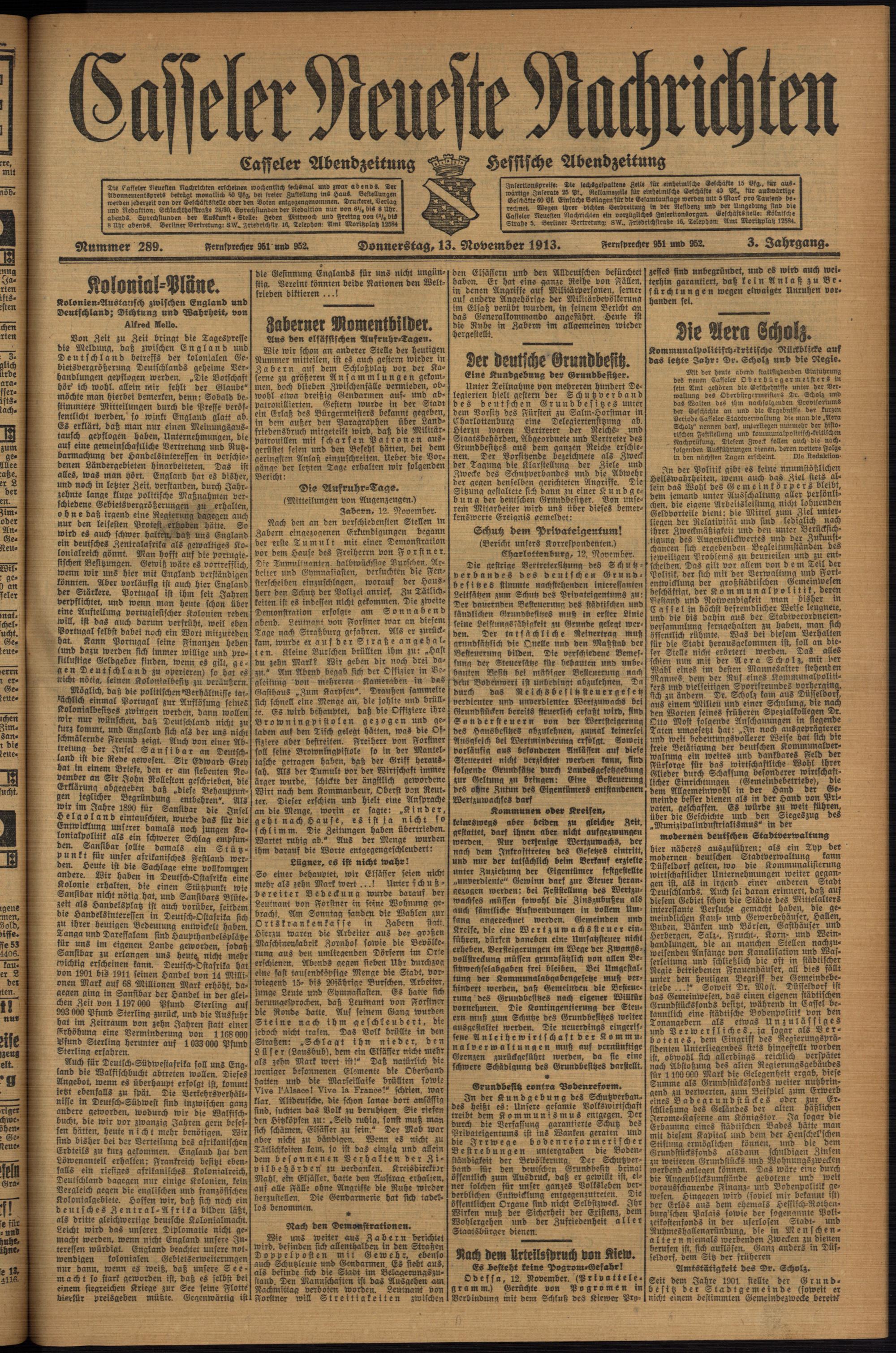 Casseler neueste Nachrichten. 1914-1918