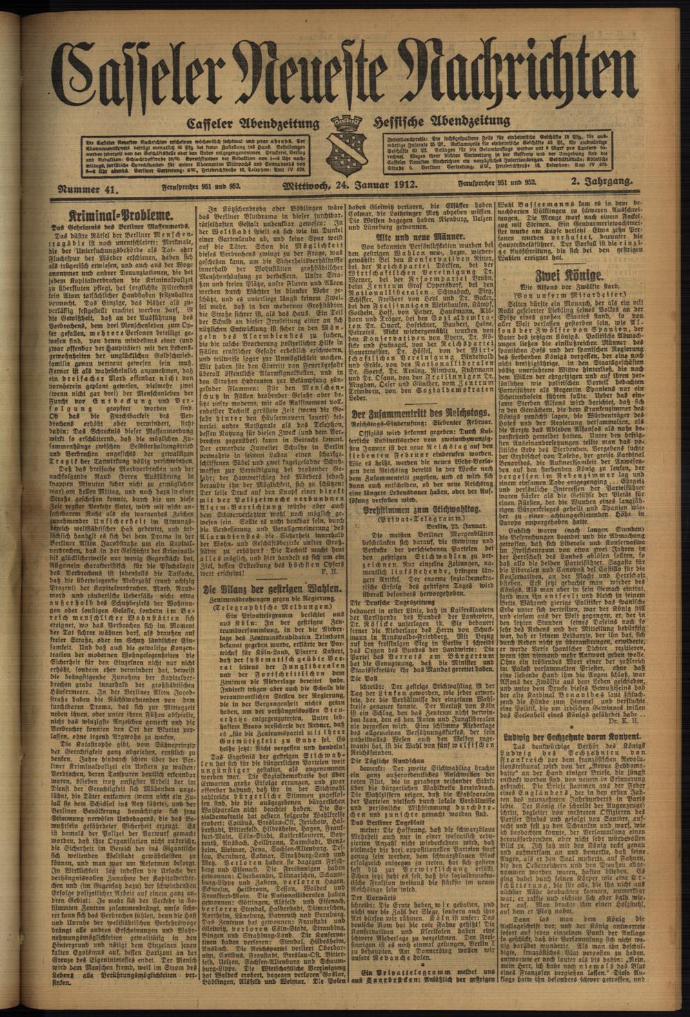 Casseler neueste Nachrichten. 1914-1918
