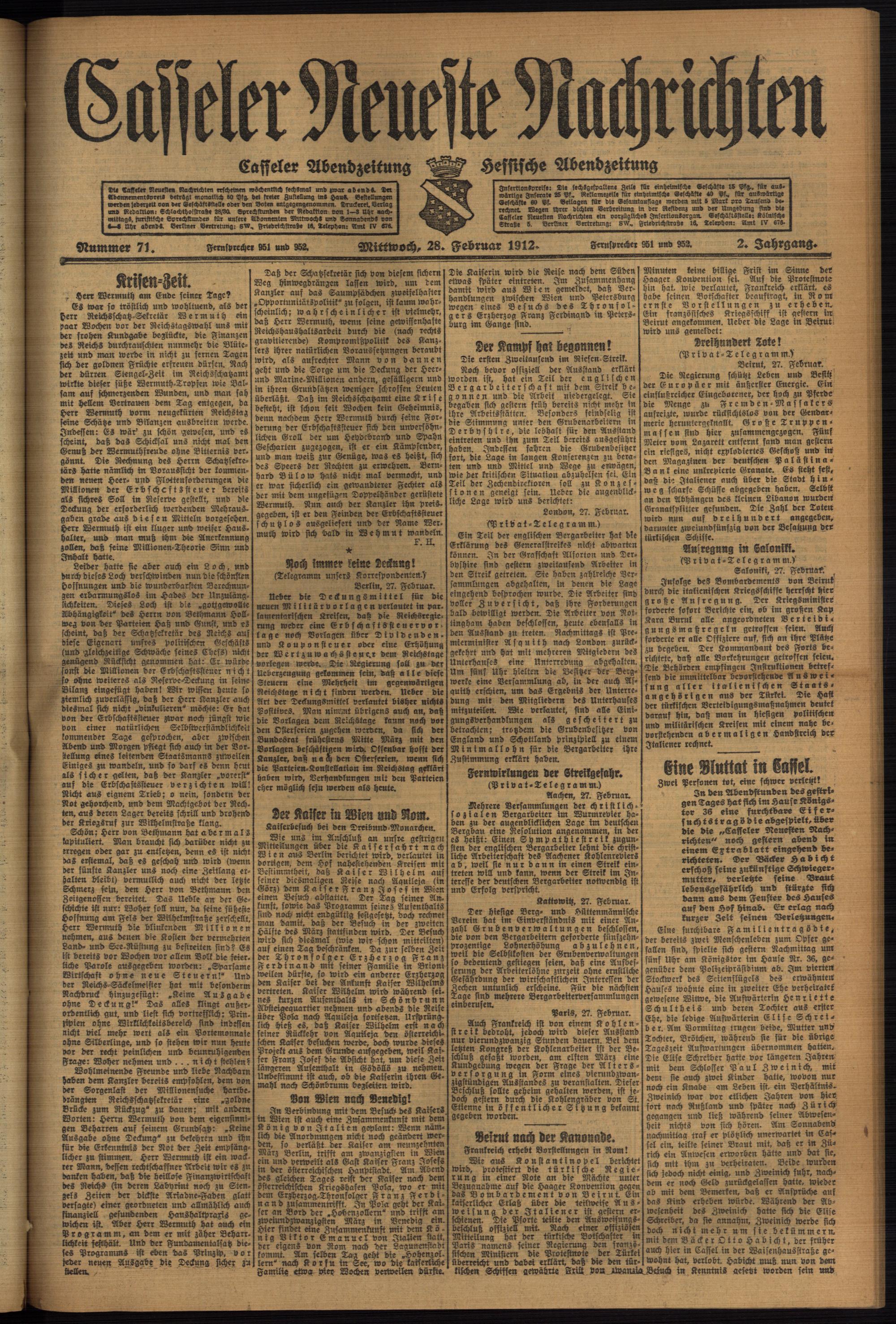 Casseler neueste Nachrichten. 1914-1918