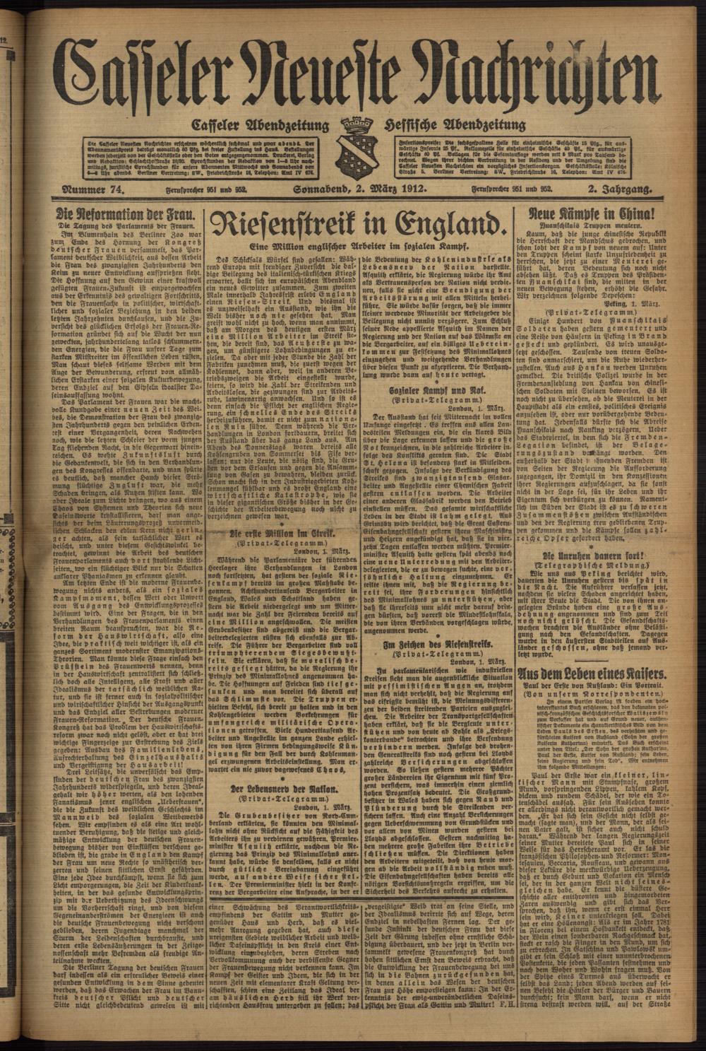 Casseler neueste Nachrichten. 1914-1918