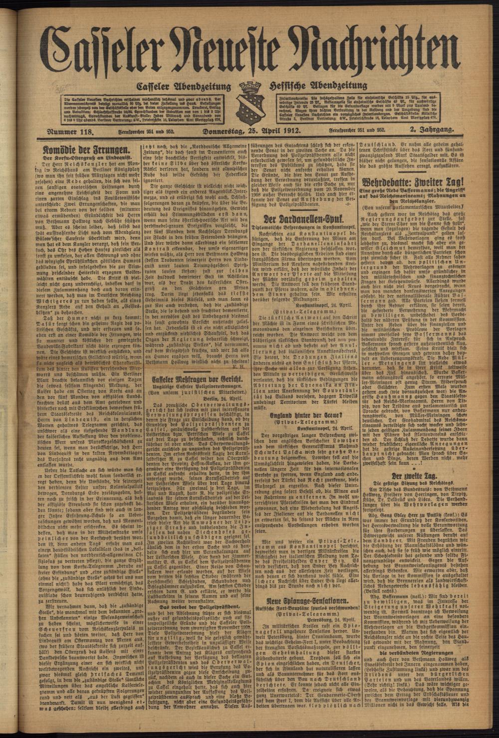 Casseler neueste Nachrichten. 1914-1918