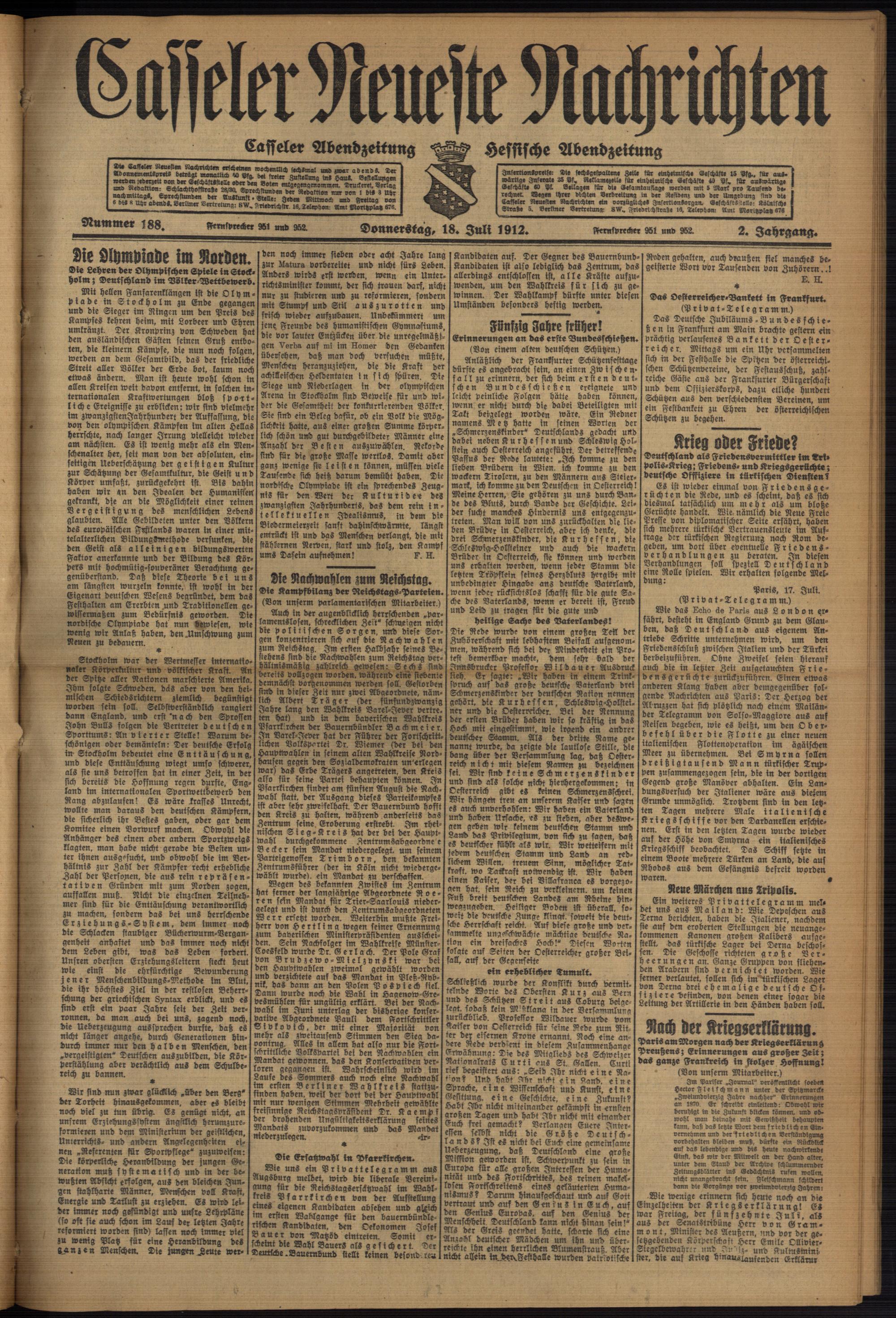 Casseler neueste Nachrichten. 1914-1918