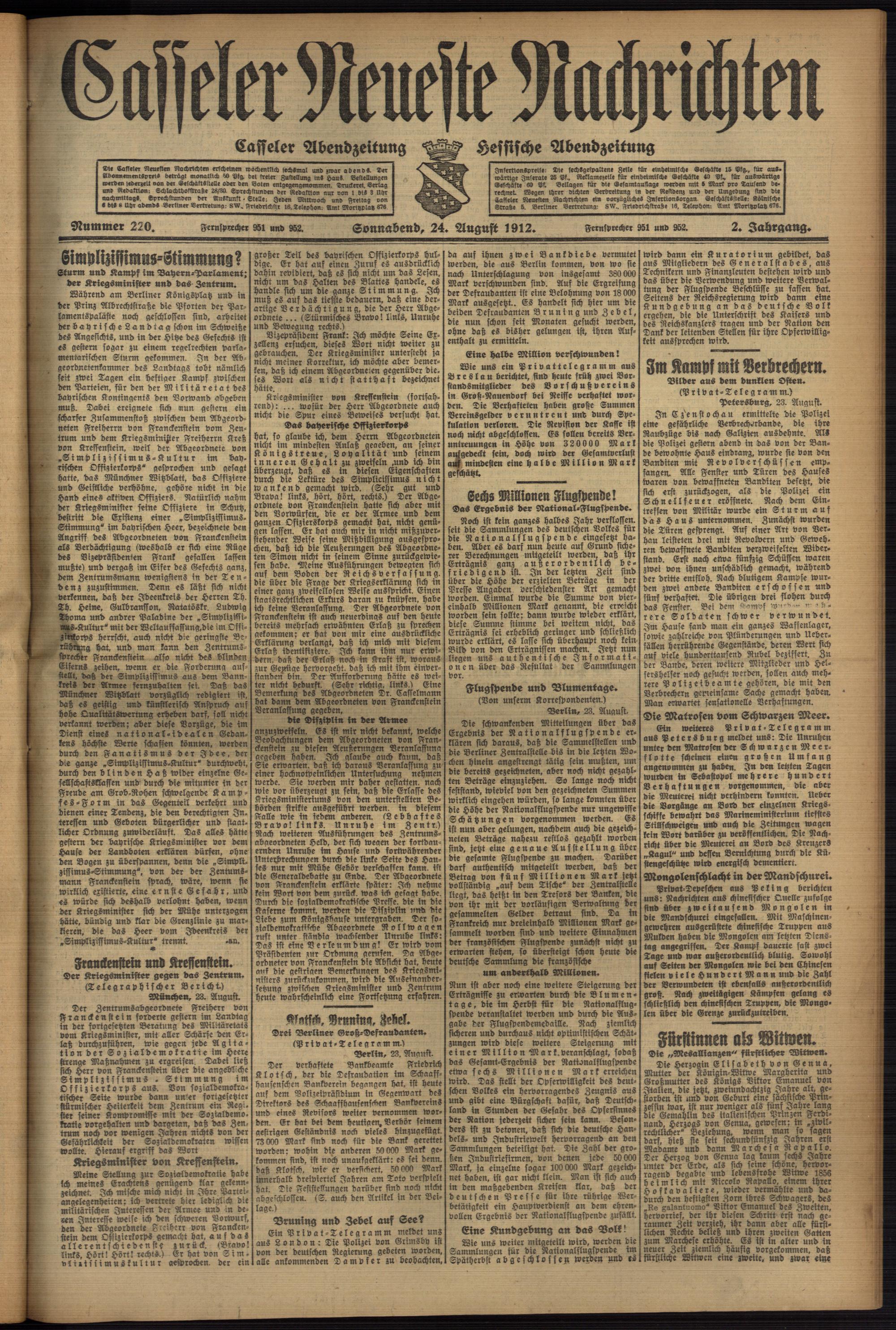 Casseler neueste Nachrichten. 1914-1918
