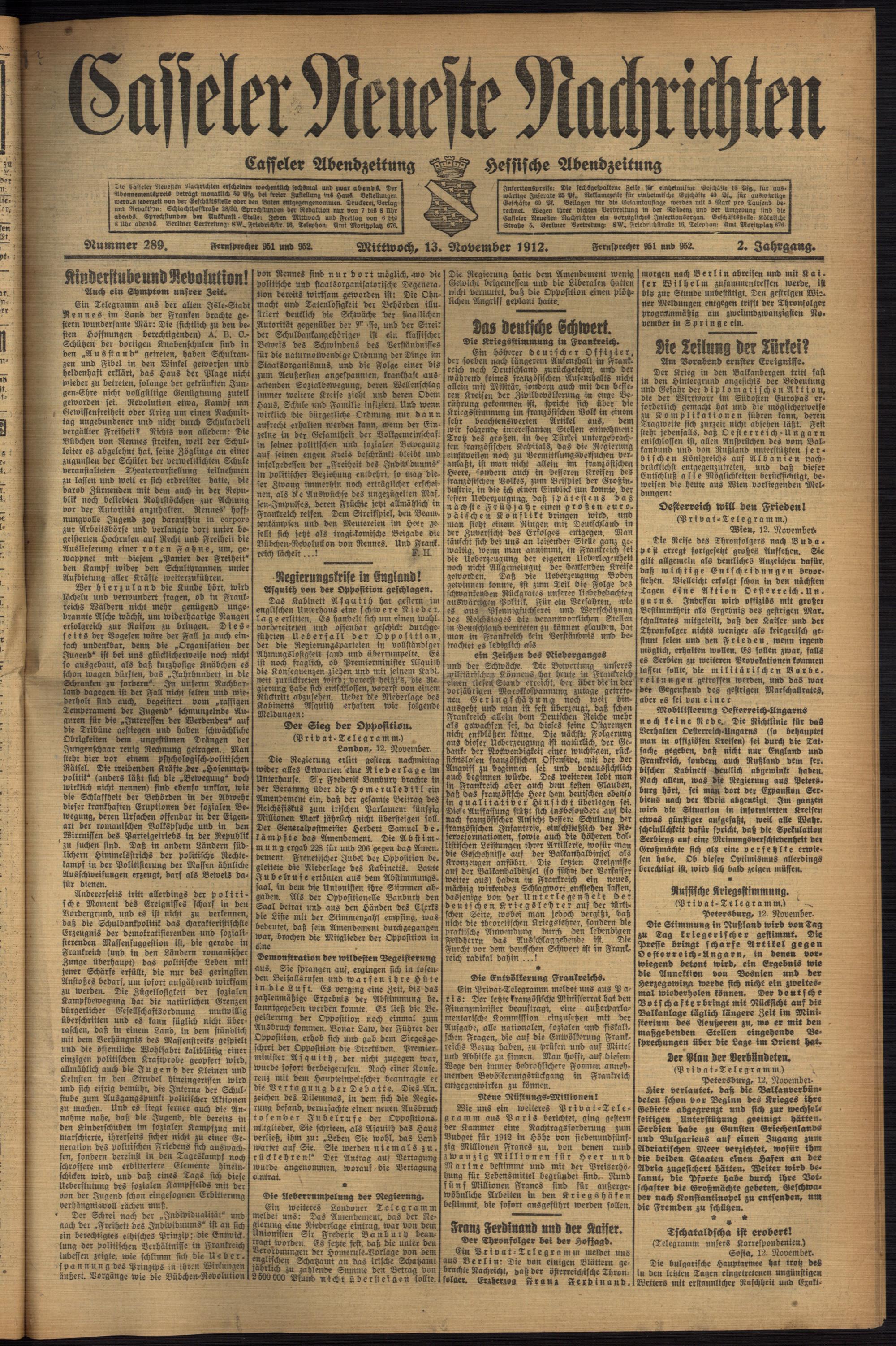 Casseler neueste Nachrichten. 1914-1918